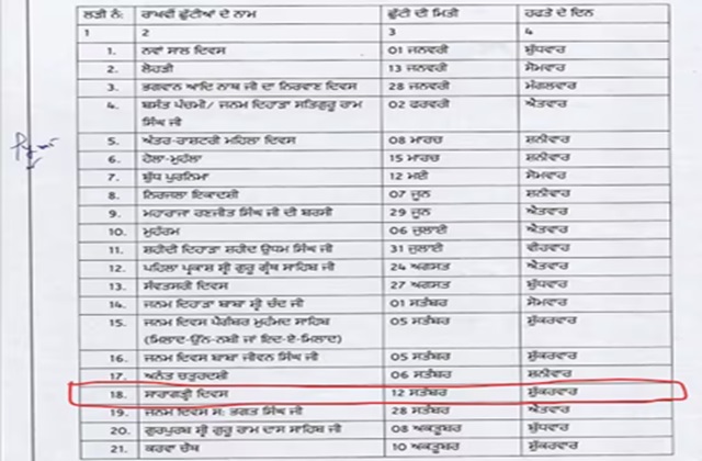 चंडीगढ़: पंजाब सरकार ने शुक्रवार 12 सितंबर को सरकारी छुट्टी का ऐलान किया है। दरअसल, 12 सितंबर को यह दिन सारागढ़ी दिवस के रूप में मनाया जाता है, जिस कारण सरकार द्वारा नोटिफिकेशन जारी किया गया है।